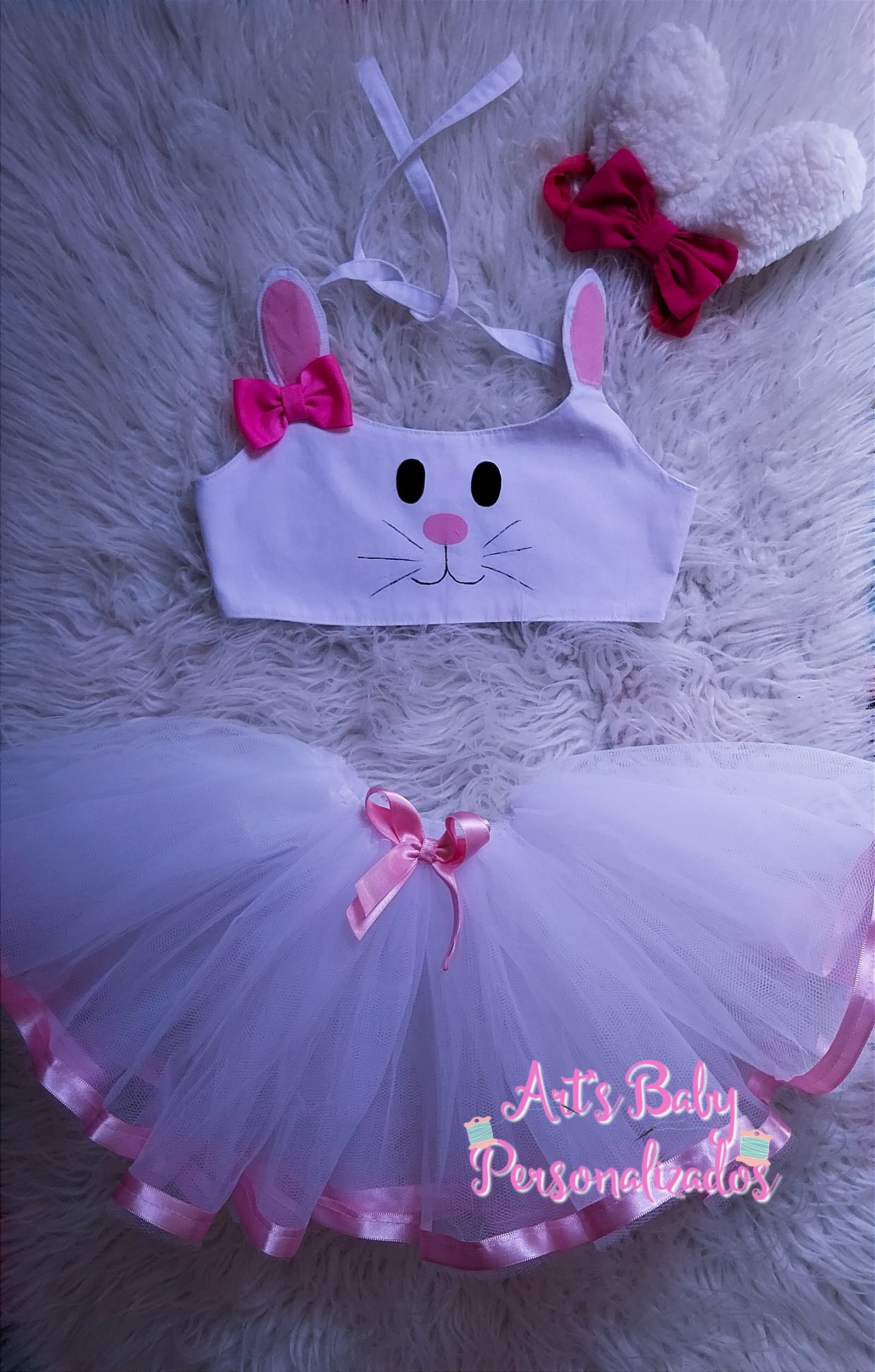 Fantasia Coelhinha (Páscoa), cropped + saia de tule decorada acessório de cabelo.